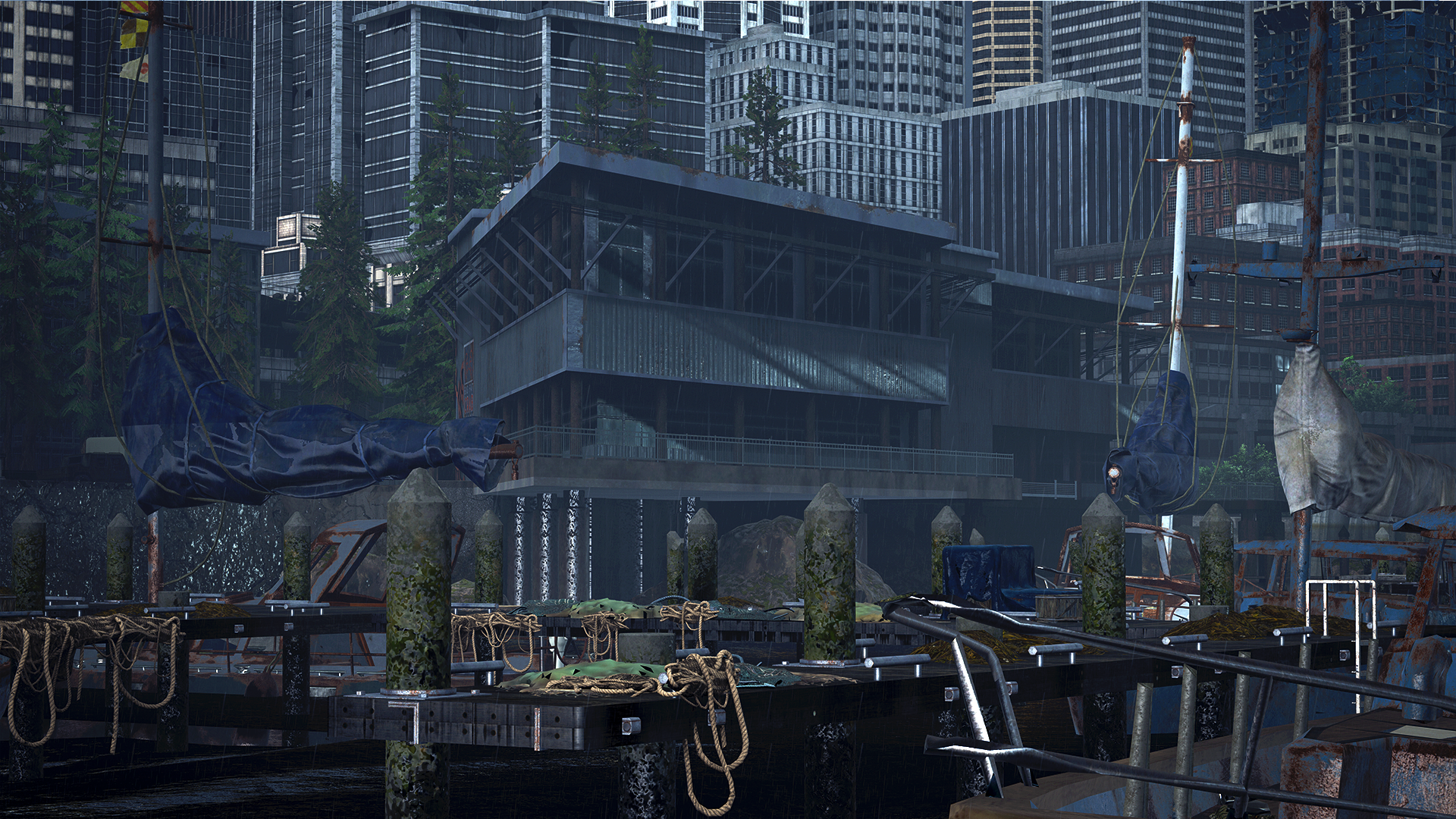 Modeled hole in the roof of building / placed destruction cards and foliage around hole / edits to placement of ac units. Material work and ac placement done by Ryan Burke