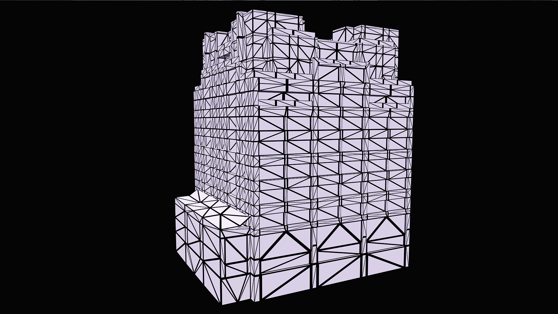 General optimization, material integration, and vertex painting on the three tall apartment buildings