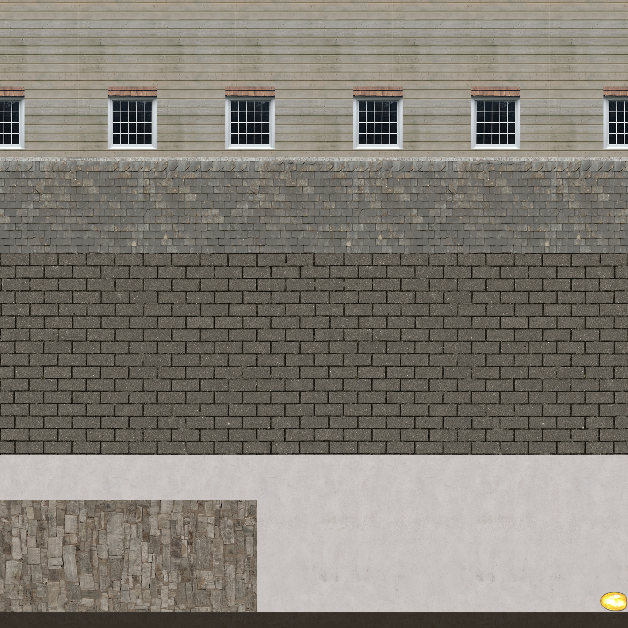 Modeled / Created materials for the wide buildings surrounding the watchtower